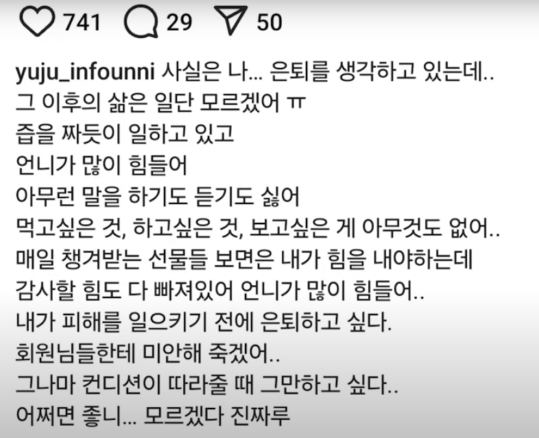 • "힘들어 보였다는 글을 보니 가슴이 아프다."