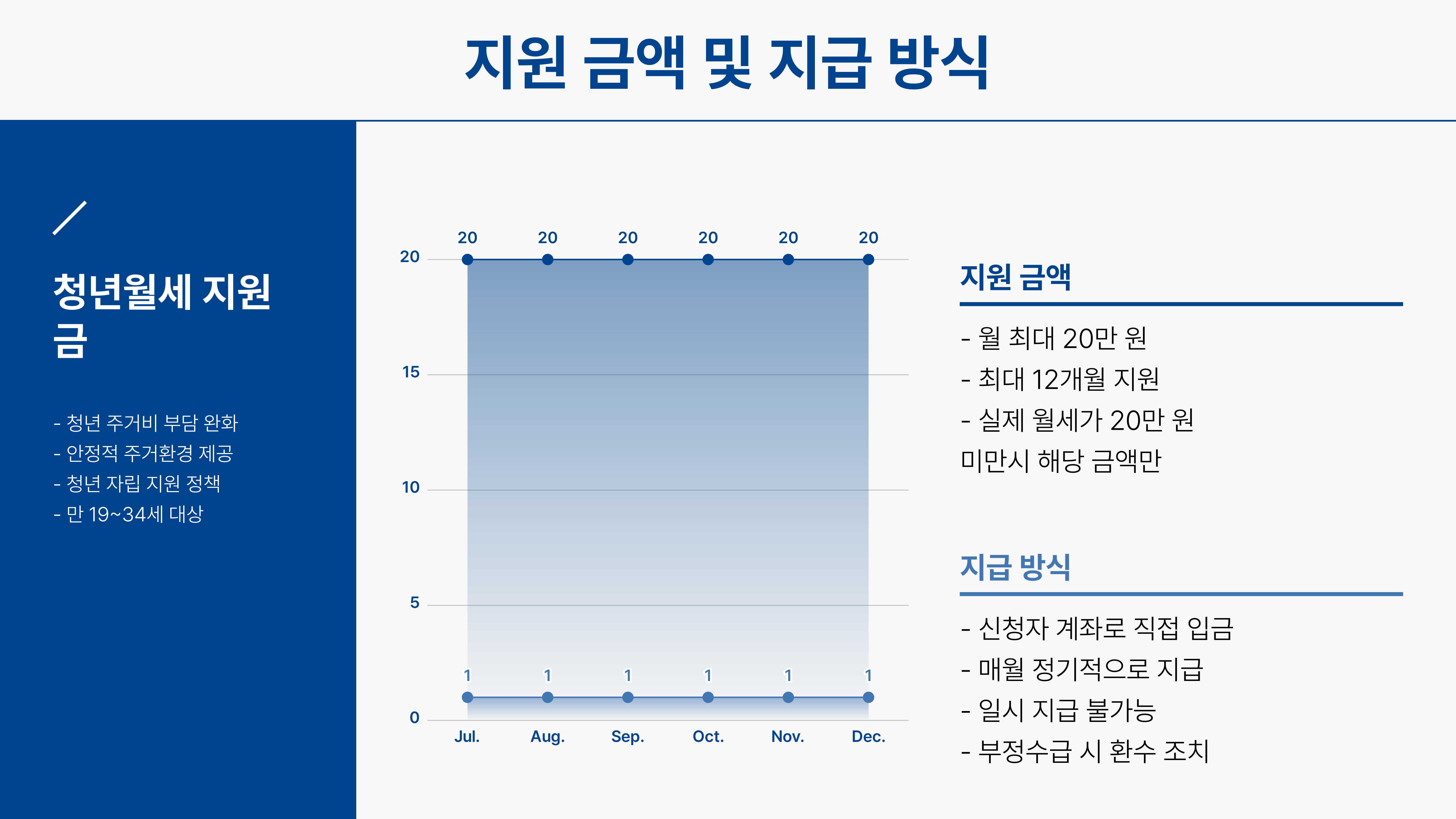 ✔ 월 최대 20만 원 (실제 월세가 20만 원 미만이면 해당 금액만 지급)
